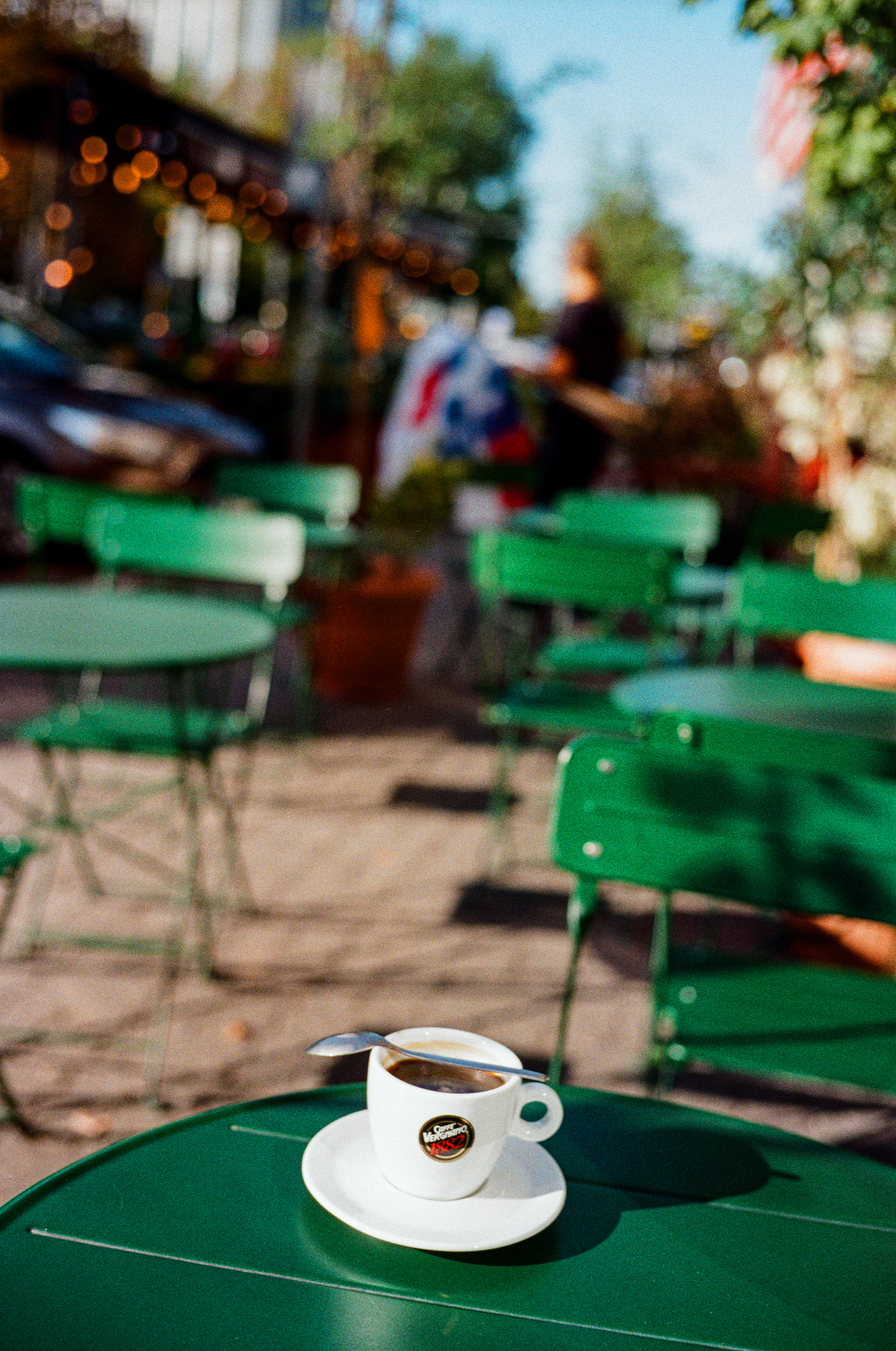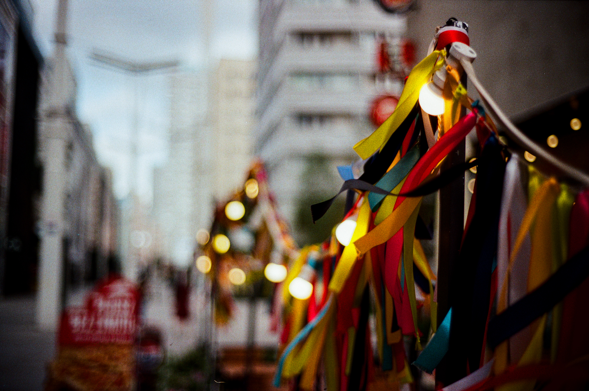 Nokton 40mm F1.4 to nie jest „poprawny” obiektyw. To obiektyw, zresztą jak i każdy Vojtek pokazać swój pazurek. Na pełnej dziurze daje miękki połysk, jakby ktoś polał światło miodem i to jest fajne. Zaś bokeh jest żywy, dziki, czasem zadziorny i naprawdę ma swój styl. Na Ultramaxie 400 gra to całkiem przyjemnie i oddaje piękne barwy: zieleń, która pamięta lato, czerwienie, które nie krzyczą i bardzo przyjemne oddanie kolorytu skóry. Zaś sama ogniskowa 40 mm? Idealny kompromis między intymnością 50 a oddechem 35. Kiedy stoisz przy stoliku z kawą, masz w kadrze zarówno filiżankę, jak i oddech ulicy z lampkami w tle.