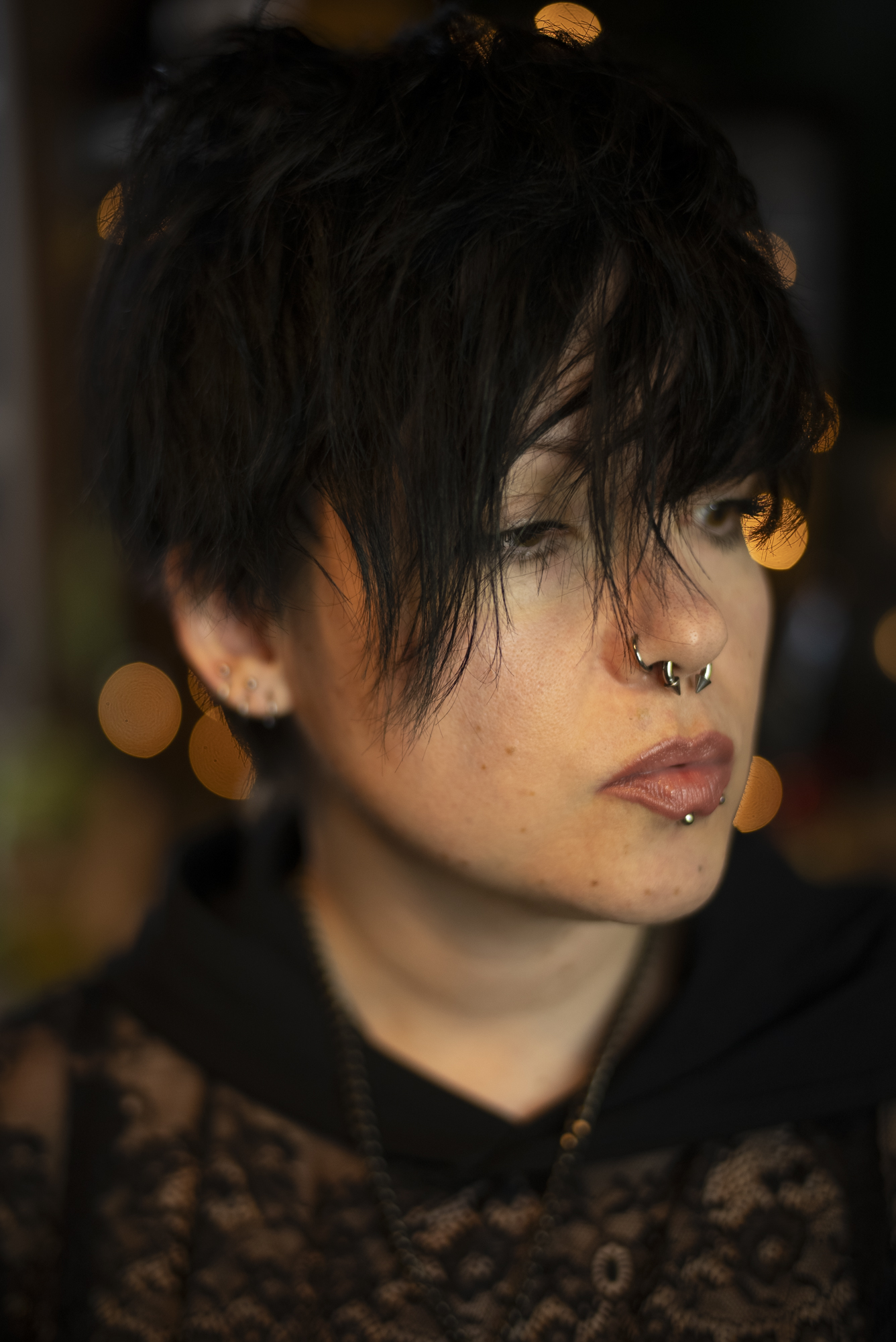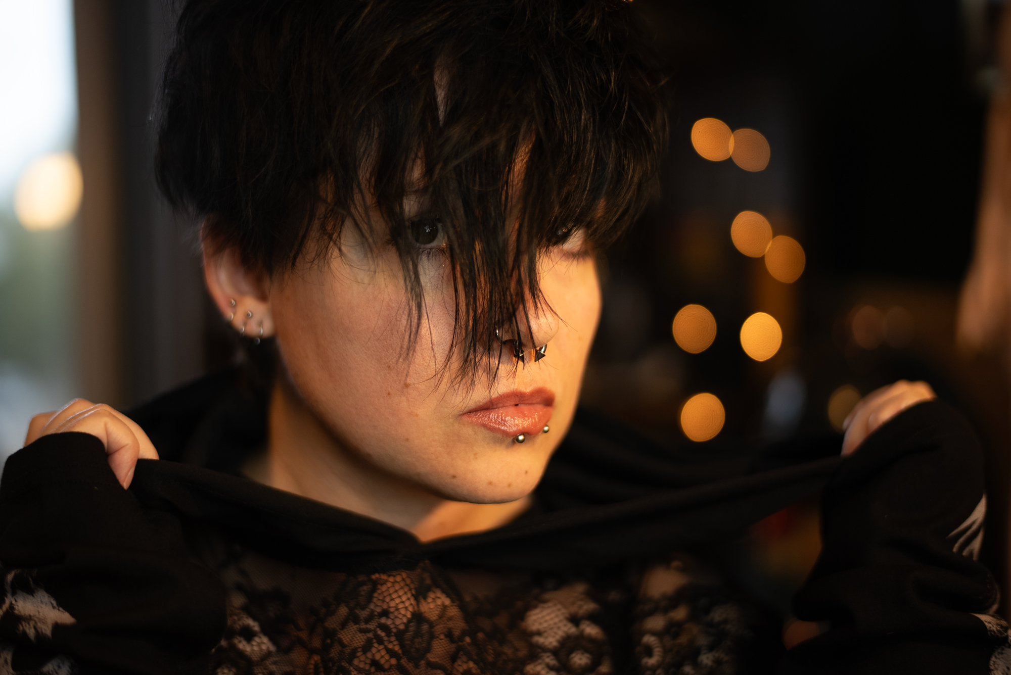 Mychol do zdjęć był przygotowany minimalistycznie – tylko szminka, pomalowane rzęsy i nara. Zero tapety, bez podkładu i błota, które potem trzeba by było zdzierać szpachelką albo śrubokrętem. Dzięki temu zdjęcia mają ten prawdziwy vibe – skóra to skóra, nie gładka ściana z filtra beauty. A śrut na fejsie? No pewnie, mój vibe w pełnej krasie – trochę błysku, trochę punku, pełen charakter. I o to mi chodziło.