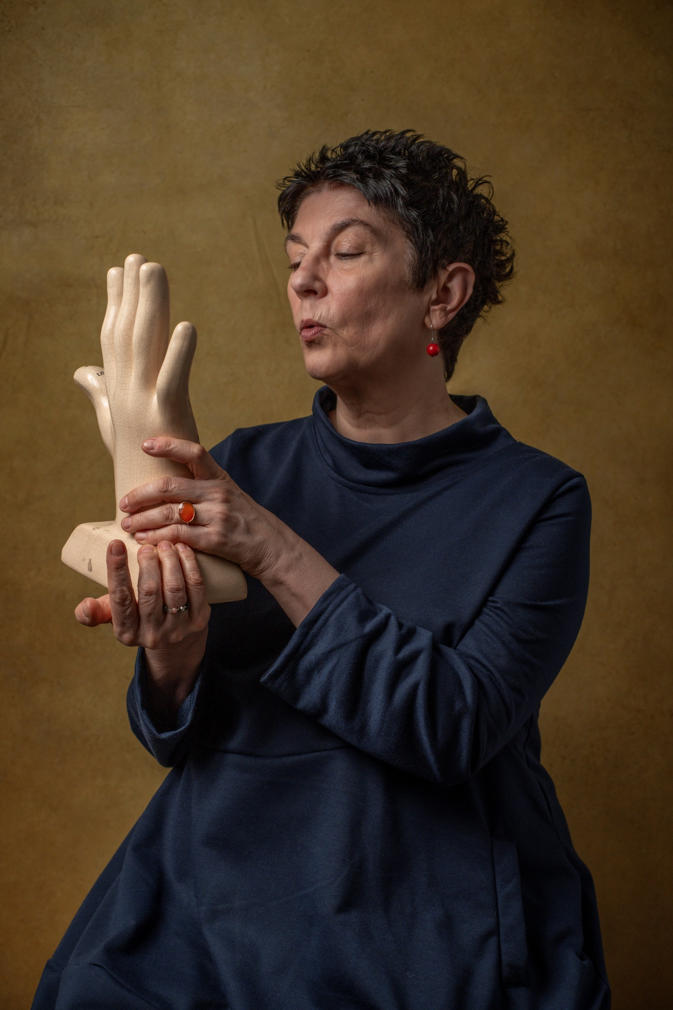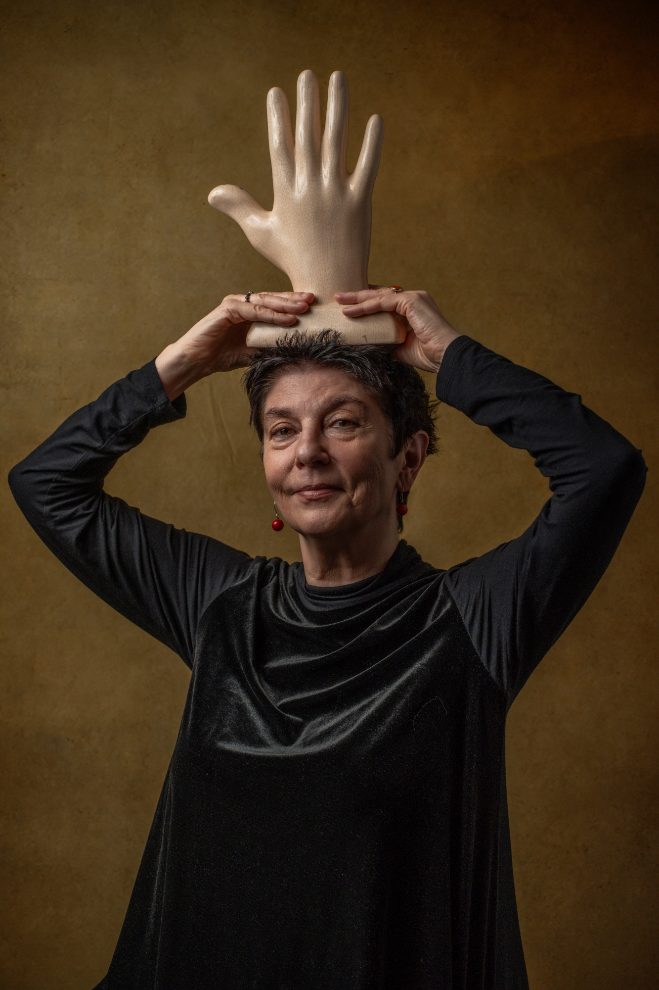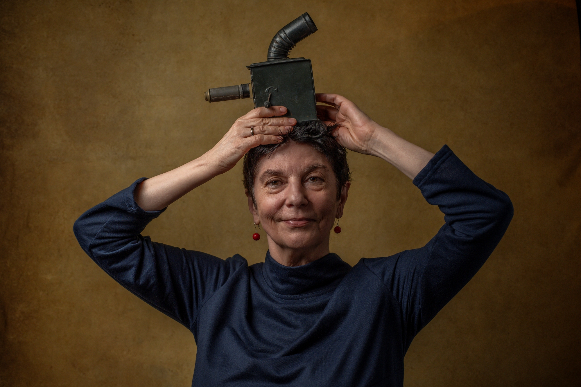 Nie użyłem tego zestawu do fotografowania monet ani faktury liścia. Paradoksalnie — poszedł na pełnoprawną sesję portretową, na dodatek z atrybutem mojej znajomej, autorki wybitnych książek o surrealizmie. Klimat odrealnienia, literackie rekwizyty, miękkie światło — Minolta udźwignęła to wszystko bez wysiłku.