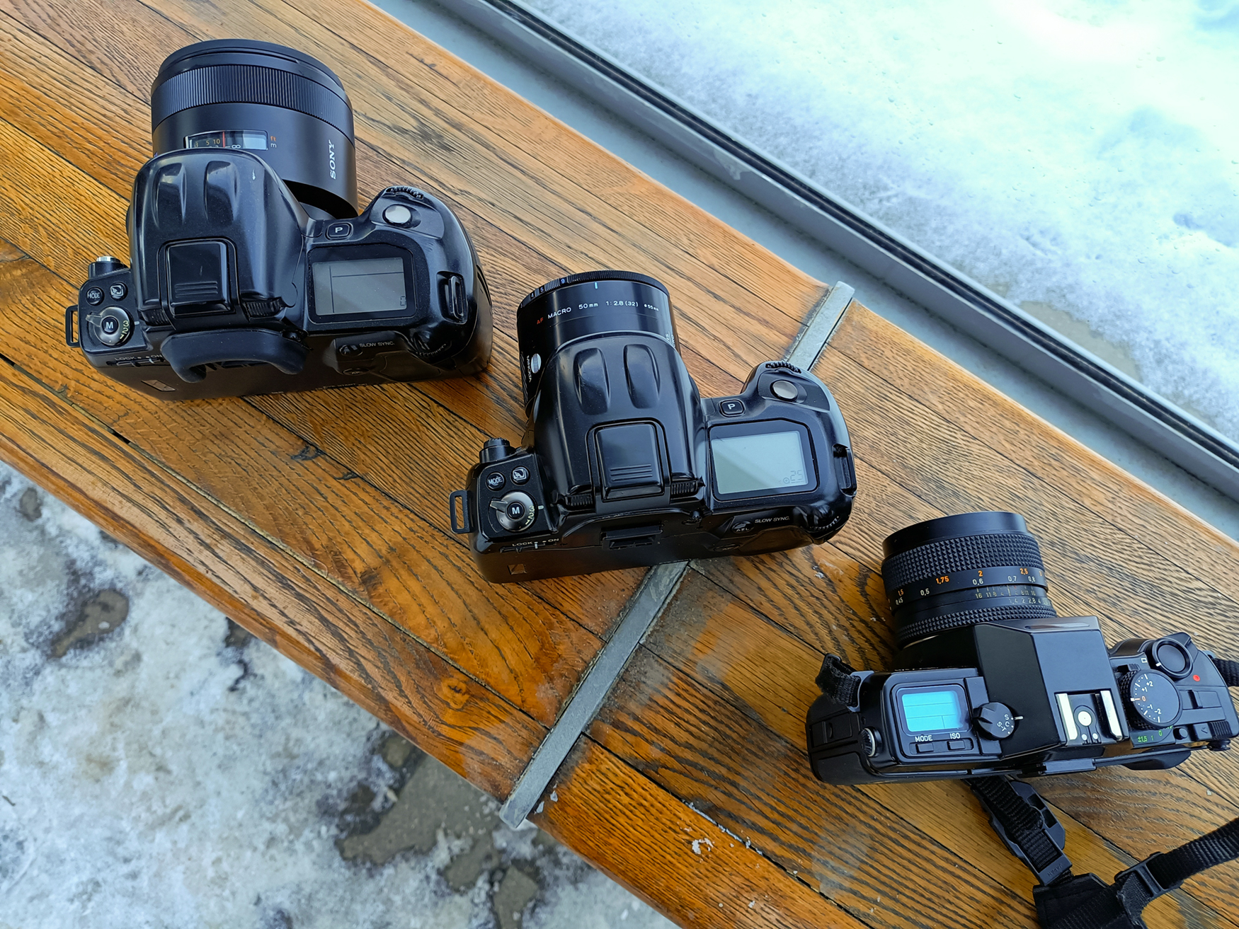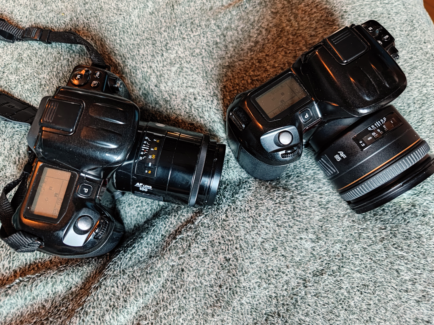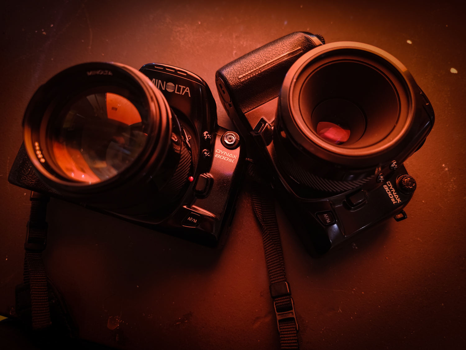 Mój aktualny setup to dwie Minolty Dynax 800si (z różnymi obiektywami) – jedna z gripem – i szczerze mówiąc, trzeci korpus już chodzi mi po głowie. Po co aż tyle? Prosto: jeden aparat zawsze jest w pogotowiu, a do tego mogę mieć różne klisze z innym ISO i różne ogniskowe pod ręką. Bez przewijania, bez kombinowania, bez „zaraz, zmienię setup”.